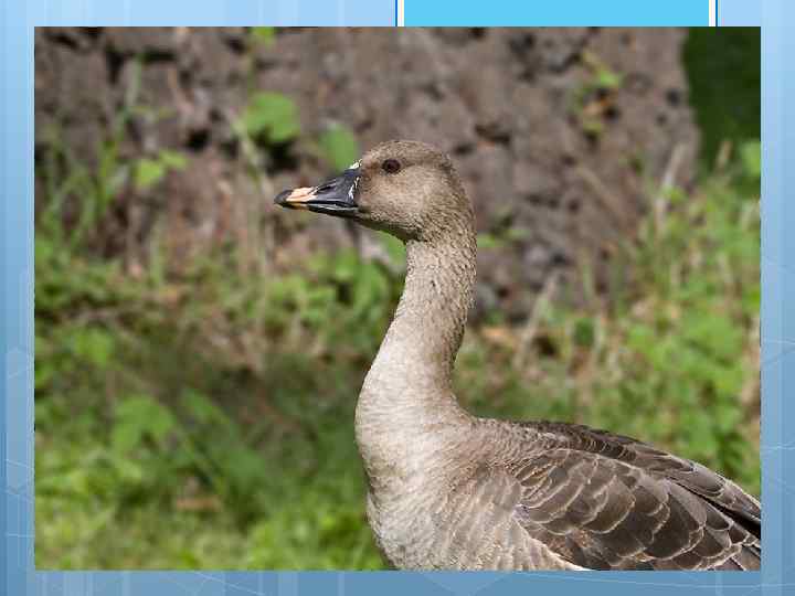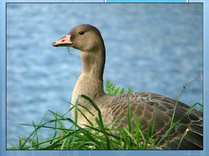 Серый гусь — птица длиной до 70 -90 см и весом около 2, 1 -4, 5 кг, размах крыльев 147 -180 см. Оперение серовато-бурое с волнистым рисунком на шее и брюхе. Имеет светлое окаймление перьев на спине. Клюв розоватый или оранжевый. Самец заметно крупнее самки. Серый гусь населяет водоёмы со стоячей водой, окружённые тростниками — болота, озёра, рыборазводные пруды и тому подобное. Встречается он и на травянистых болотах и заливных лугах, выбирая самые недоступные места.