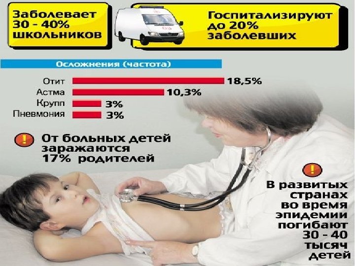 Термин "острое респираторное заболевание" (ОРЗ) или "острая респираторная вирусная инфекция" (ОРВИ) охватывает большое количество заболеваний. Все они вызываются вирусами, проникающими в организм вместе с вдыхаемым воздухом через рот и носоглотку. У больного несколько дней отмечается повышенная температура тела, воспаленное горло, кашель и головная боль. Самым распространенным респираторным заболеванием является острый ринит (насморк). При выздоровлении, все эти симптомы исчезают и не оставляют после себя никаких следов. Однако, было бы совершенно неправильным называть все ОРЗ и ОРВИ гриппом. Грипп вызывается непосредственно вирусом гриппа (Myxovirus influenzae), относящимся к семейству ортомиксовирусов. Грипп и ОРВИ занимают первое место по частоте и количеству случаев в мире и составляет 95% всех инфекционных заболеваний. В России ежегодно регистрируют от 27, 3 до 41, 2 млн. заболевших гриппом и другими ОРВИ.