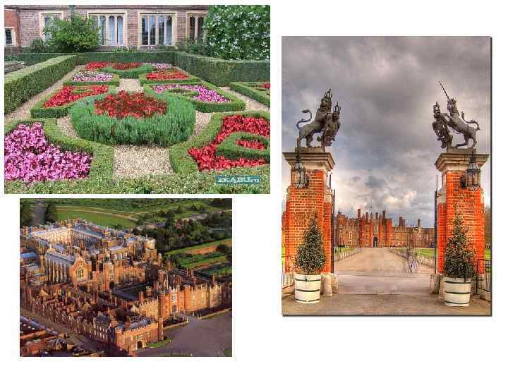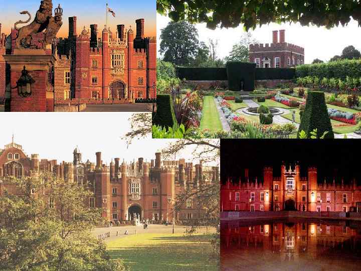 • Hampton Court (Hampton Court) - The former country residence of the kings of England, situated on the River Thames in the London suburb of Richmond-upon-Thames. The palace was built in 1514, the all-powerful Cardinal Wolsey, who, feeling the cool royal favor, gave it as a gift to Henry VIII. The Cardinal continued to live in the palace until 1529, but since 1525 the construction work was in charge of the king. If Wolsey inspired layout of Italian Renaissance palazzo, the King brought a somber architecture elements of medieval architecture, and built a large hall to play real tennis (it is called the oldest tennis court in the world).