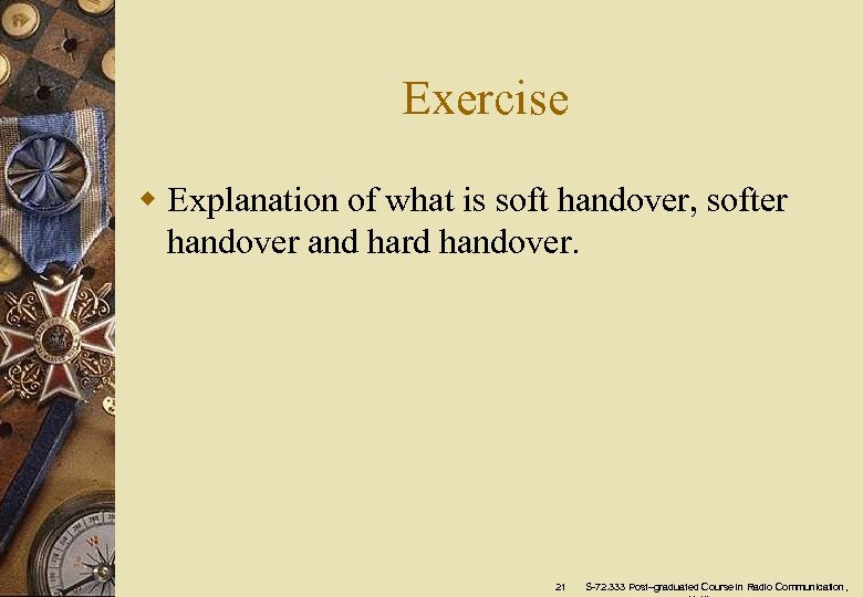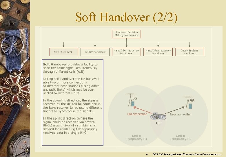 Exercise w Explanation of what is soft handover, softer handover and hard handover. 21 S-72. 333 Post–graduated Course in Radio Communication,