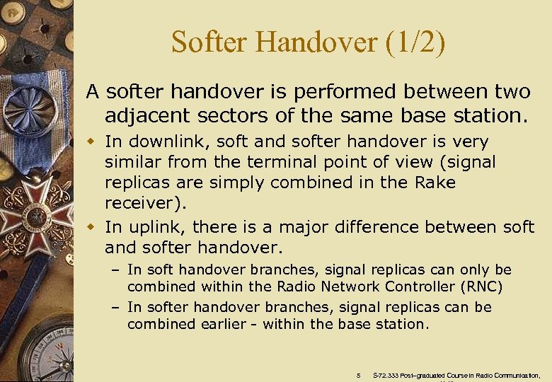 Soft Handover (2/2) 4 S-72. 333 Post–graduated Course in Radio Communication,