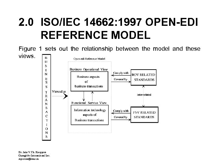 2. 0 ISO/IEC 14662: 1997 OPEN-EDI REFERENCE MODEL Figure 1 sets out the relationship between the model and these views. Dr. Jake V. Th. Knoppers Canaglobe International Inc. mpereira@istar. ca