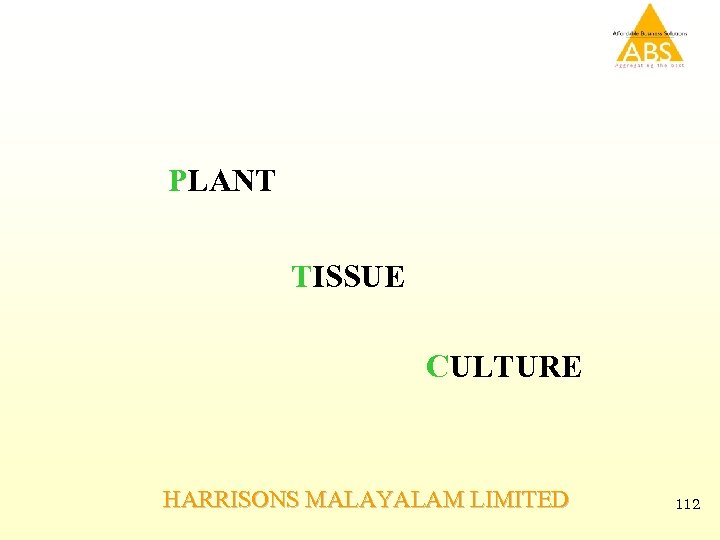PLANT TISSUE CULTURE HARRISONS MALAYALAM LIMITED 112