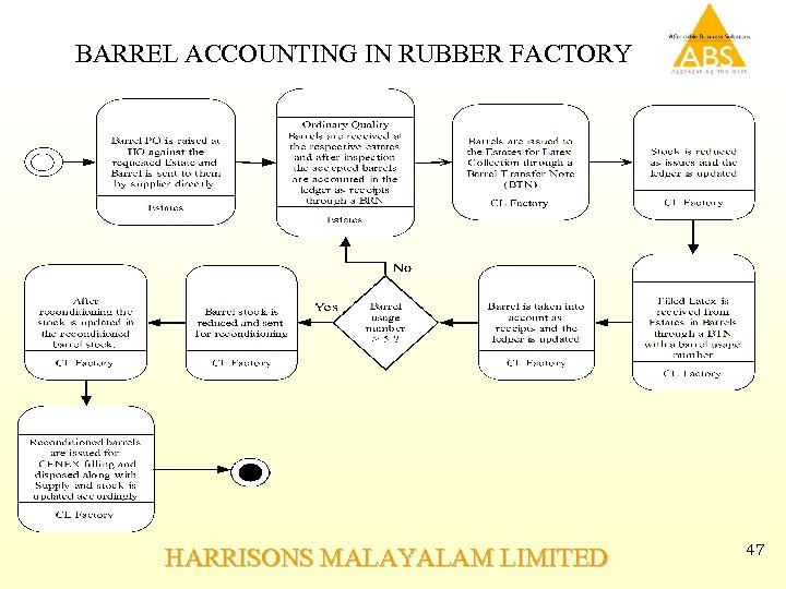 BARREL ACCOUNTING IN RUBBER FACTORY HARRISONS MALAYALAM LIMITED 47