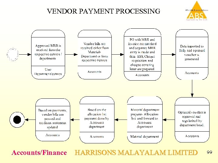 VENDOR PAYMENT PROCESSING Accounts/Finance HARRISONS MALAYALAM LIMITED 99