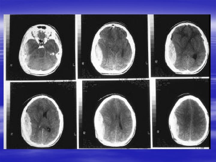 Specific Head Injuries § Epidural Hematoma – Occurs in 0. 5% of all head injuries – Blunt trauma to temporoparietal region – Eighty percent with associated skull fracture – May occur with venous sinus tears – Classic presentation only 30% of the time