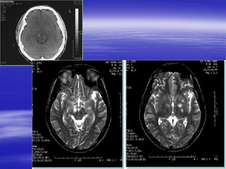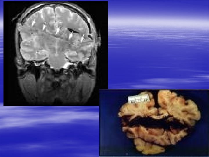 Specific Head Injuries § Diffuse Axonal Injury – Disruption of axons in white matter and brainstem – Injury occurs immediately and is irreversible – Seen after MVC or shaken baby syndrome – Usually have persistent vegetative state – CT usually normal – MRI with multiple, diffuse abnormalities