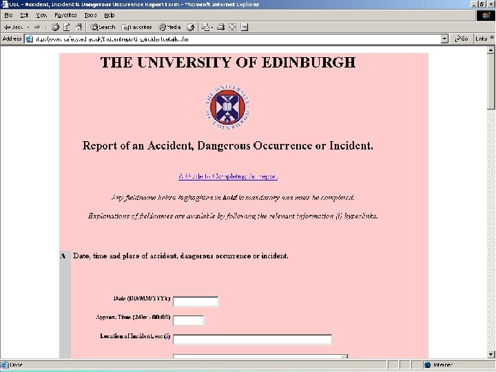 Health and Safety Department web site: http: //www. safety. ed. ac. uk/