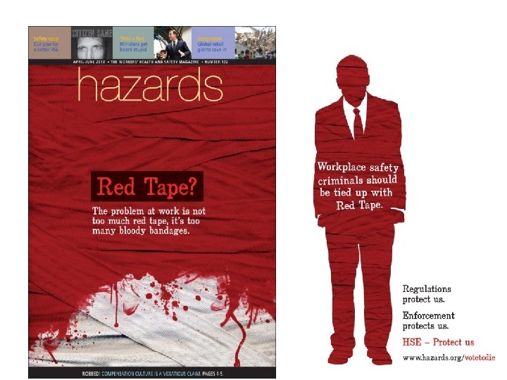 A better world is possible – if we all work together • Support Hazards magazine for a safer, safer future where workers are at the centre of safety policy, not the victims of it. ‘Like’ the We Love Red Tape facebook page: www. facebook. com/votehazards • For more info http: //www. hazards. org/votetodie/citizensane. htm#safetypays • Defend H&S inside the workplace • Fight back against the attacks with member, union. , community, build support for sane health and safety • Challenge the lies with members, in press/, media and public forums, Lobby MPs,