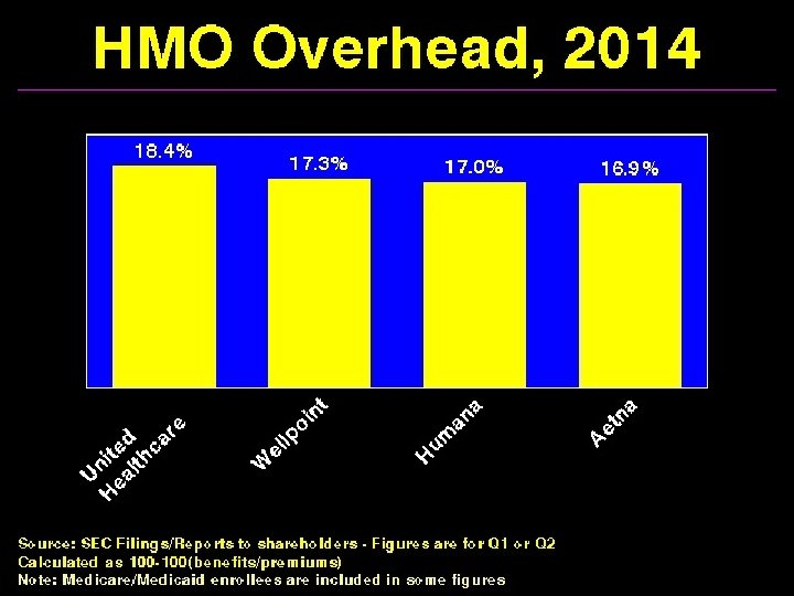 Health Insurance Industry/Bureaucracy n High administrative costs n $450 billion/yr n 15 -30% (vs. 2 -3% for Medicare and Medicaid) n No change with PPACA n Hospital bureaucracy consumes ¼ of hospital budgets n Highest at for-profit hospitals n No effect on quality of care