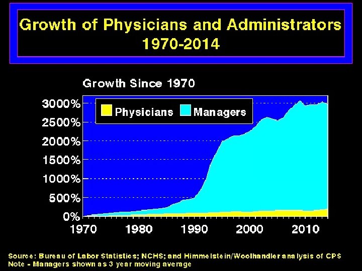 Health Insurance Industry/Bureaucracy n High administrative costs n Average full-time physician spends over $86, 430/yr on billing and insurance functions n $83, 000 trying to recoup payment; $3430 on prior authorizations n 17, 849 different billing codes (in 2011) - now 141, 058