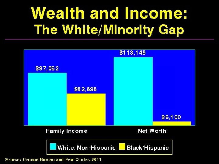 Economic Disparities n Women 75 cents/$1 Men n Median income of black U. S. families as a percent of white U. S. families 62% n 60% in 1968 n 63% for Hispanic families
