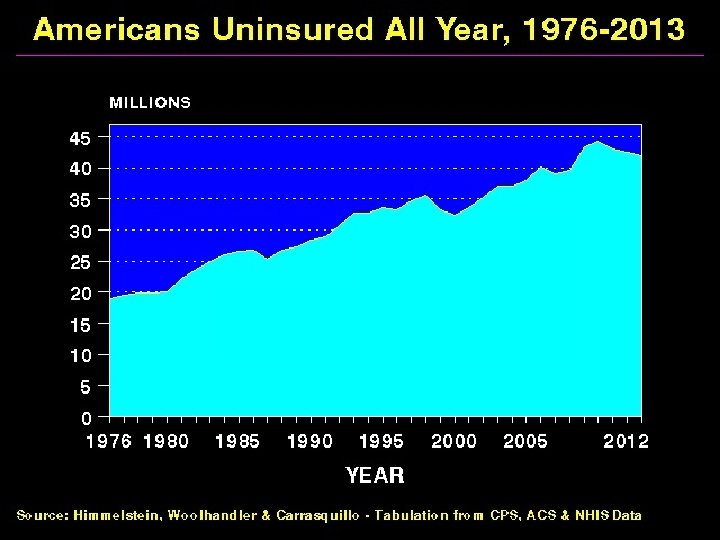 PPACA Patient Protection and Affordability Care Act n Problems: n Leaves 32 million without insurance n 40% of these eligible for, but not enrolled in, Medicaid or CHIP n 22% undocumented immigrants n. Translates into 32, 000 excess annual deaths