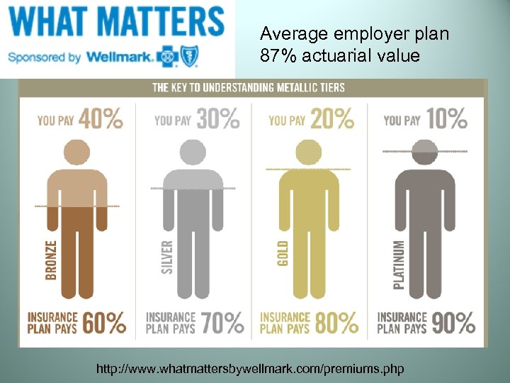 Average employer plan 87% actuarial value http: //www. whatmattersbywellmark. com/premiums. php