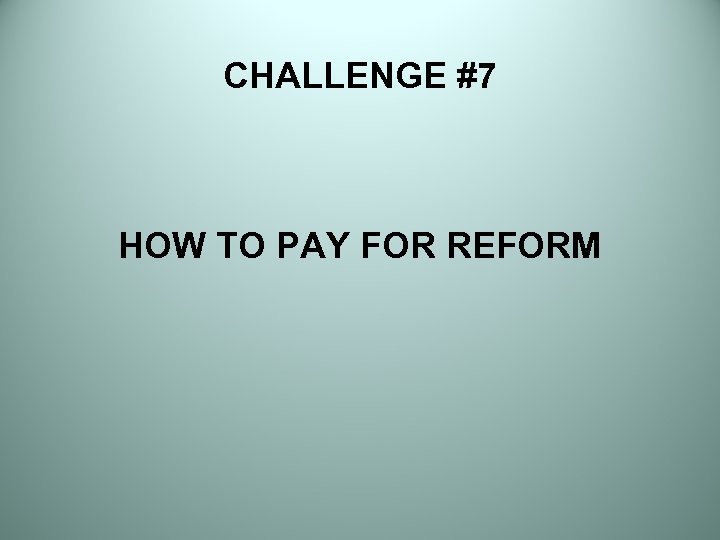 CHALLENGE #7 HOW TO PAY FOR REFORM