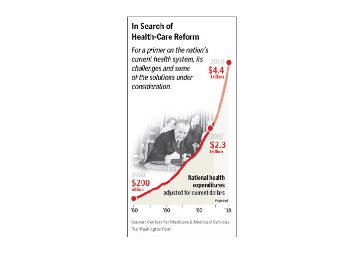 Hx of US Health Reform George Santayana famously said: "Those who cannot remember the past are condemned to repeat it. “ • • • 1949 Supreme Court upholds National Labor Relations Board ruling that employee benefits can be included in collective bargaining. 1951 Joint Commission on Accreditation of Hospitals formed to improve the quality of hospital care 1952 Federal Security Agency proposes enactment of health insurance for Social Security beneficiaries. 1953 Federal Security Agency made cabinet level renamed Department of Health Education and Welfare (DHEW) 1954 President Eisenhower proposes a federal reinsurance fund to enable private insurers to broaden the groups of people covered. 1954 Revenue Act excludes employers’ contributions to employee’s health plans from taxable income. 1956 Military “medicare” program enacted, providing government health insurance for dependents of those in the Armed Forces. 1957 AFL-CIO decides to support government health insurance, while the AMA reiterates opposition to national health insurance. 1960 Federal Employees Health Benefit Plan (FEHBP) initiated to provide health insurance coverage to federal workers. 1960 Kerr-Mills Act passes, using federal funds to support state programs providing medical care to the poor and elderly 1962 President Kennedy addresses the nation from Madison Square Garden to support Medicare; AMA issues televised rebuttal. 1964 Civil Rights Act passes.