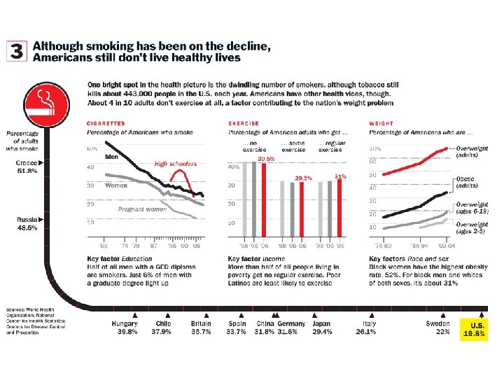 Health Care Facts Quiz http: //facts. kff. org/ • • • • US Health spending averaged $8, 086 / person in 2009, totaling $2. 5 trillion (17. 6%) GDP; >2 x since 1970 Approximately 1% of the U. S. population was responsible for 21% of health care spending in 2006 50 million nonelderly Americans were uninsured in 2010, and 8/10 were in families with at least one worker Medicare covers 44 million Americans (16% <65 and disabled) at a projected cost of $420 billion in 2009 Medicare accounts for ~14% of federal budget, ~7% accounted for by Medicaid; [SS (22%) / Do. D(20%)] Employers provide health benefits for about 159 million people (53%) of all Americans; However, the percentage of employers who offer such benefits has been falling: 69% in 2000 vs 63% in 2008 The average employer premium was $12, 680 in 2008; of which covered workers paid ~27% or $3, 354 Since 1999, family premiums have increased 119%; wages have gone up 34%; inflation has gone up 29% Since 1982, increases in health spending/capita have exceeded increases in the CPI; 5. 1% vs. 2. 8% in 2007 In 2005 24% of Medicaid enrollees [elderly or disabled] accounted for 70% of the program's $275 billion Only 30% of spending was for the 45 million [children and adults] who make up 76% of total enrollment Medicaid pays 40% of all the nation's long-term care costs; the largest payer for long-term care More than half of American adults surveyed (55%) barely give the quality of American health care a passing grade—a C or D on a standard report card scale; More than one in 10 (11%) give the quality of care an F. In addition, nearly half (47%) of Americans give the quality of hospital care in the country a rating of C, D or F.