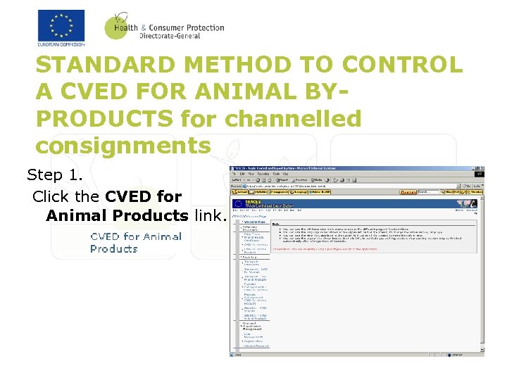 STANDARD METHOD TO CONTROL A CVED FOR ANIMAL BYPRODUCTS for channelled consignments Step 1. Click the CVED for Animal Products link.