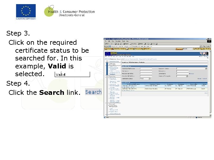 Step 2. The appropriate certificate to be controlled can be searched for by certificate reference, consignor, departure after and before a certain date, certificate status, country of origin, consignee, commodity or means of transport. As many fields as possible should be populated, in order to limit the search as much as possible. In this example, the certificate is to be searched for by the certificate status. Click on the arrow to the right of the Certificate Status: field.