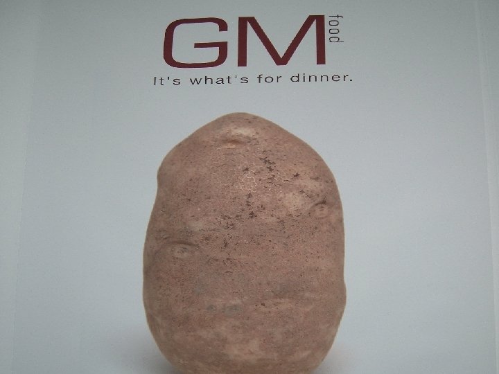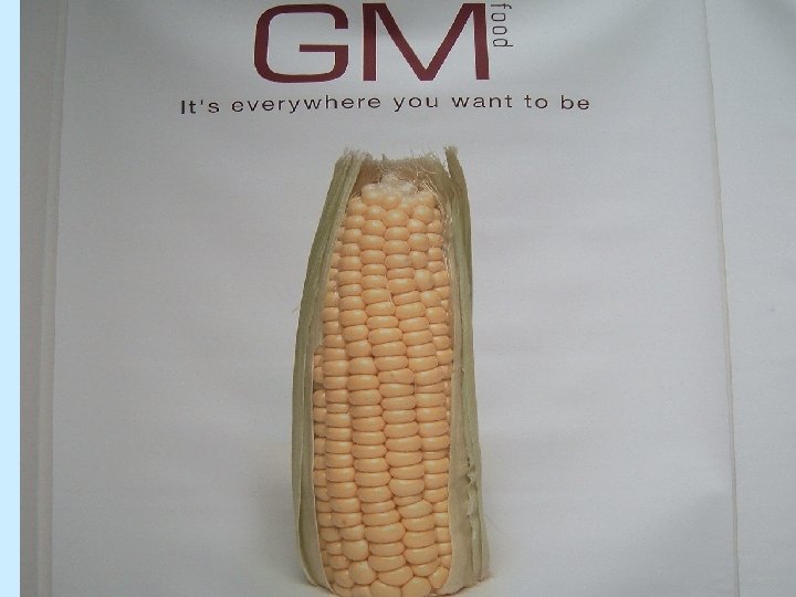 GENETICALLY-MODIFIED ORGANISMS (GMOS) • A new technology, with a difference – electricity, even nuclear power can be turned off • GM is self-replicating, cannot be turned off and no method is known to make the gene disappear