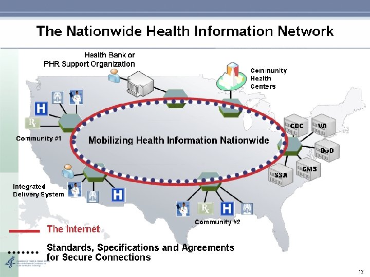 National: Meaningful Use guidance • In order to qualify for bonus payments (and avoid penalties) – By 2011, the following must be exchanged: • Doctors: Problem lists, medication lists, allergies, test results • Hospitals: Discharge summaries, procedures, problem lists, medication lists, allergies, and test results – By 2013, the following must be exchanged: • Doctors: Share all care transition data across the community electronically • Hospitals: Share all care transition data electronically