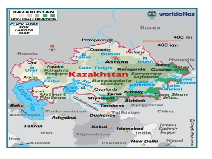 Overview l l l The capital, formerly Almaty (previously Alma-Ata, the birthplace of Primary Health Care) from December 1997 moved to Astana in the North The population was estimated at 17, 458 million in March 2015. As well as geographic diversity, the country is ethnically diverse. The main groups are Kazakhs (65, 5%), Russians ( 21, 47%), Uzbeks (3, 04%), Ukrainians (1, 76%), Uyghurs(1, 44%), Tatars (1, 18%), Germans (1, 06%), and others (4, 55%) The level of literacy of the population is 99. 6 % (Source: The World Fact, 2013) l Kazakhstan is a secular state. The majority of the population are said to be atheists while the main religions are Sunni Muslim(70, 18%), Russian Orthodox (24, 8%), Protestant (2%), other (3, 02%)