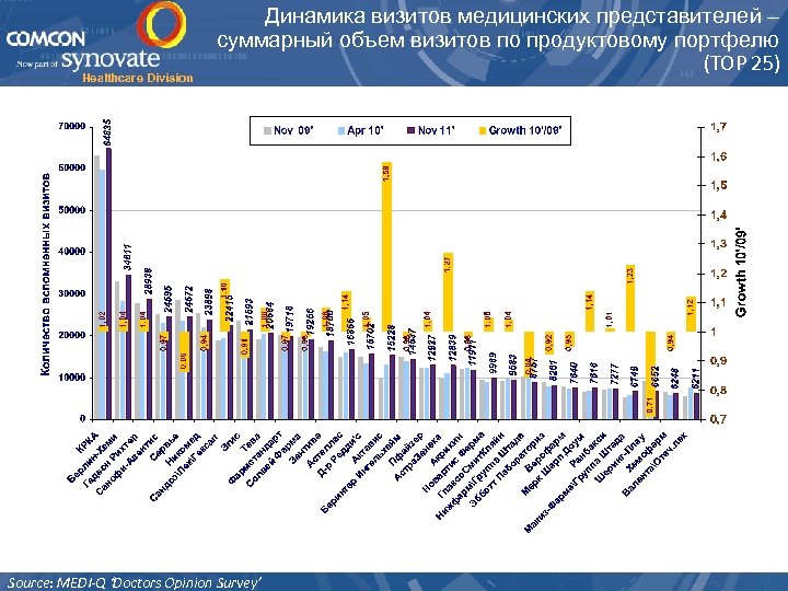 Healthcare Division Динамика визитов медицинских представителей – суммарный объем визитов по продуктовому портфелю (ТОР 25) Source: MEDI-Q ‘Doctors Opinion Survey’