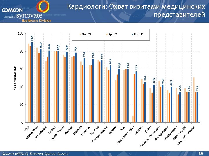 Healthcare Division Кардиологи: Охват визитами медицинских представителей Source: MEDI-Q ‘Doctors Opinion Survey’ 16