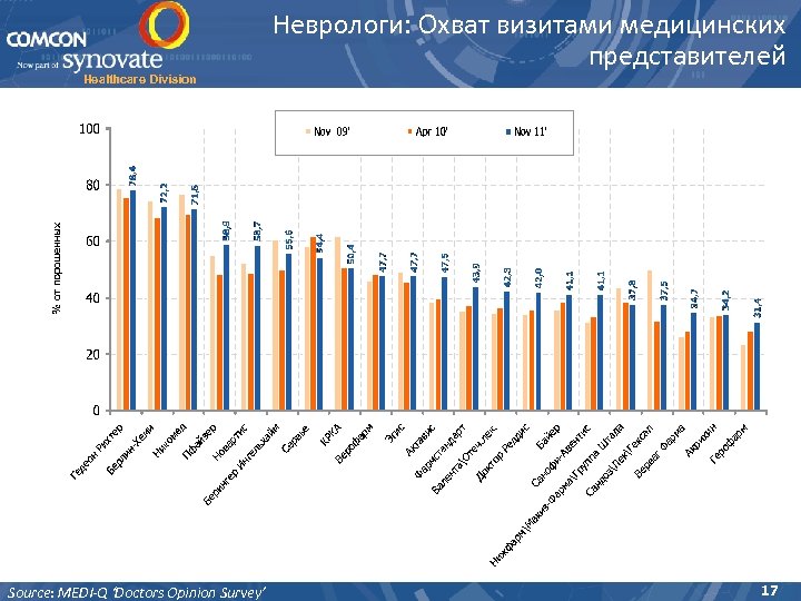 Healthcare Division Source: MEDI-Q ‘Doctors Opinion Survey’ Неврологи: Охват визитами медицинских представителей 17