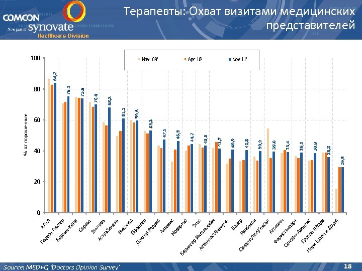 Healthcare Division Source: MEDI-Q ‘Doctors Opinion Survey’ Терапевты: Охват визитами медицинских представителей 18