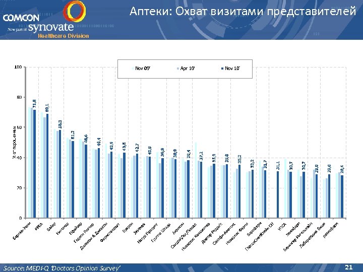 Аптеки: Охват визитами представителей Healthcare Division Source: MEDI-Q ‘Doctors Opinion Survey’ 21