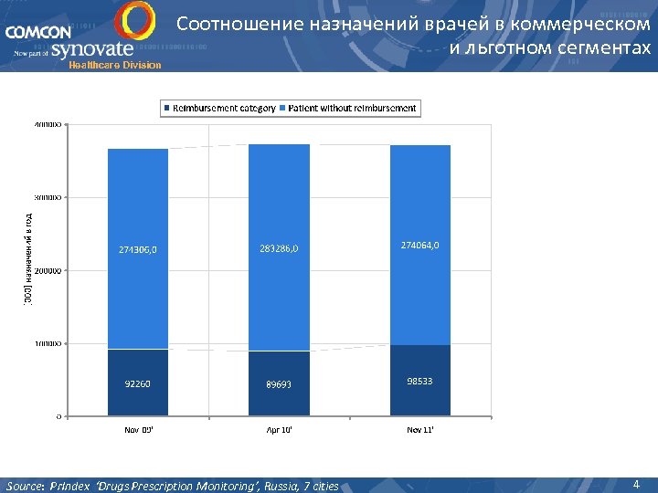 Healthcare Division Соотношение назначений врачей в коммерческом и льготном сегментах Source: Pr. Index ‘Drugs Prescription Monitoring’, Russia, 7 cities 4