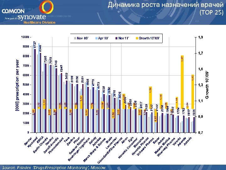 Динамика роста назначений врачей (ТОР 25) Healthcare Division Source: Pr. Index ‘Drugs Prescription Monitoring’, Moscow