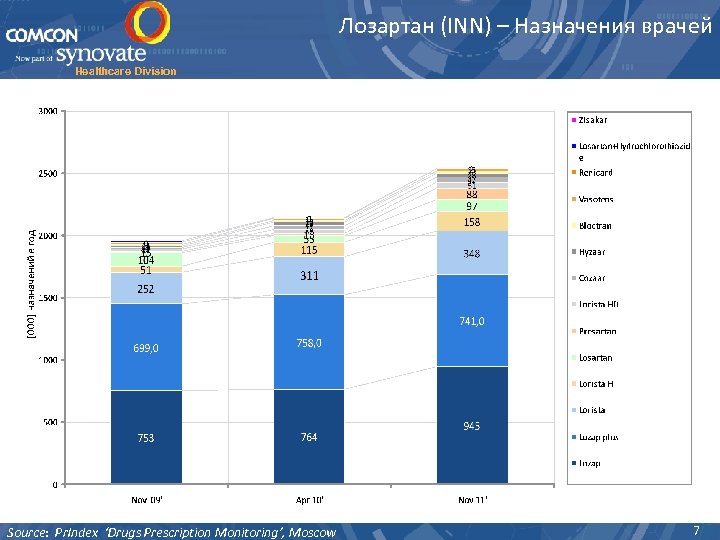 Лозартан (INN) – Назначения врачей Healthcare Division Source: Pr. Index ‘Drugs Prescription Monitoring’, Moscow 7