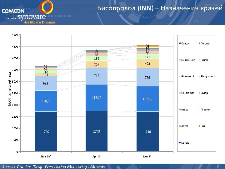 Бисопролол (INN) – Назначения врачей Healthcare Division Source: Pr. Index ‘Drugs Prescription Monitoring’, Moscow 8