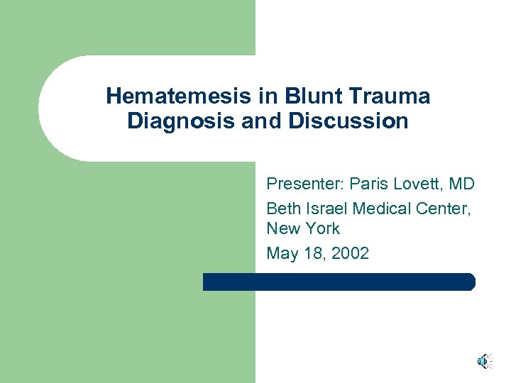 Hematemesis in Blunt Trauma Diagnosis and Discussion Presenter: Paris Lovett, MD Beth Israel Medical Center, New York May 18, 2002