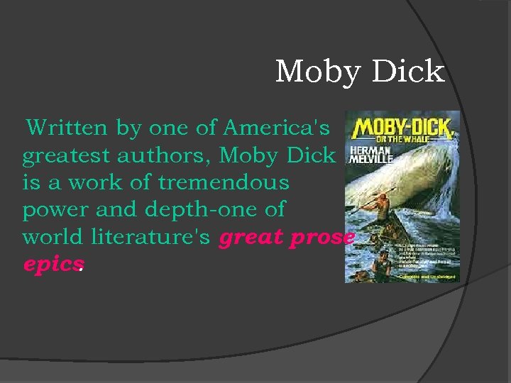 Moby Dick Written by one of America's greatest authors, Moby Dick is a work of tremendous power and depth-one of world literature's great prose epics.