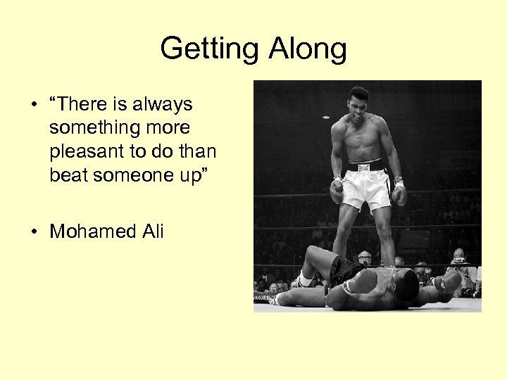 Getting Along • “There is always something more pleasant to do than beat someone up” • Mohamed Ali