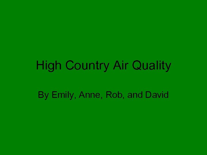 High Country Air Quality By Emily, Anne, Rob, and David