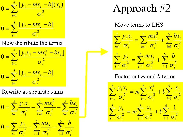 Approach #2 Move terms to LHS Now distribute the terms Factor out m and b terms Rewrite as separate sums