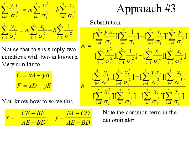 Approach #4 Inserting and evaluating, we get m = 0. 068781, b = 0. 161967 What about significant figures? 2 nd and 5 th terms give biggest contribution to c 2 = 2. 587