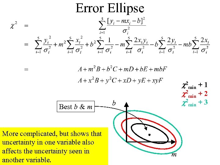 Error Ellipse Best b & m More complicated, but shows that uncertainty in one variable also affects the uncertainty seen in another variable. c 2 min + 1 c 2 min + 2 c 2 min + 3 b m