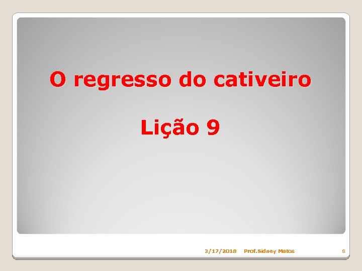 O regresso do cativeiro Lição 9 3/17/2018 Prof. Sidney Matos 8
