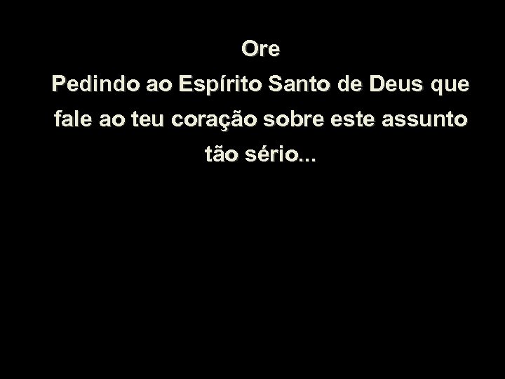 Ore Pedindo ao Espírito Santo de Deus que fale ao teu coração sobre este assunto tão sério. . .