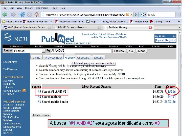 History 10 A busca “#1 AND #2” está agora identificada como #3