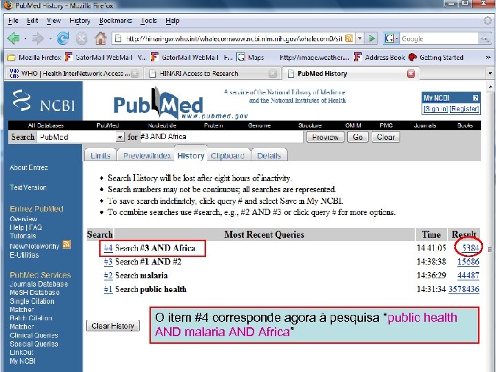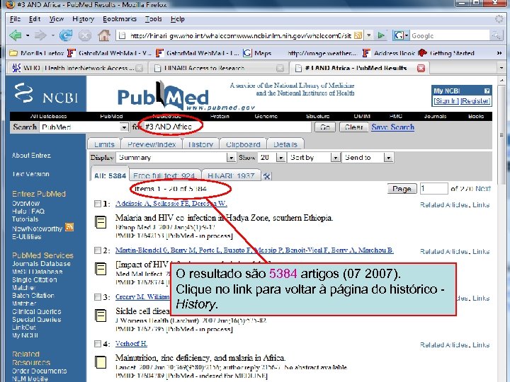 History 13 O item #4 corresponde agora à pesquisa “public health AND malaria AND Africa”