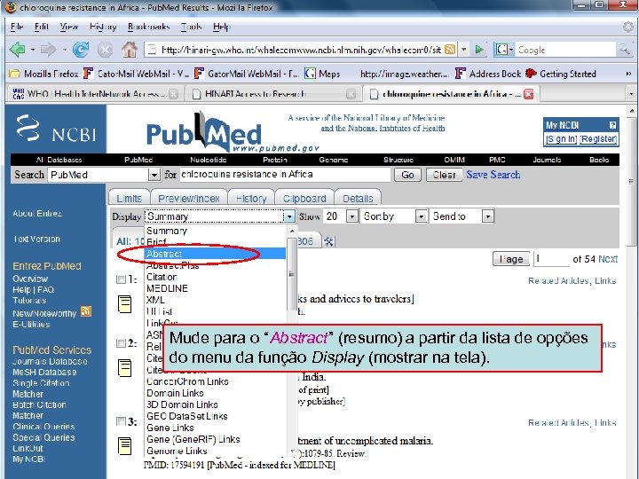 Linking to full text 3 Mude para o “Abstract” (resumo) a partir da lista de opções do menu da função Display (mostrar na tela).