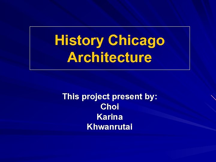 History Chicago Architecture This project present by: Choi Karina Khwanrutai