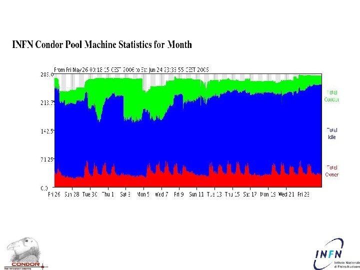 The Pool Today • 8 checkpoint servers: Bologna, Milano, Torino, Pavia, Trieste, Padova, LNGS, Napoli. • 270 CPUs • 45. 5 years CPU equivalent used from January to June 25 th -> 91 years CPU/year