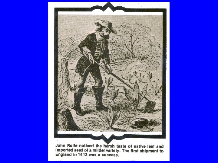 Tobacco in the United States Export to England – 20, 000 lbs in 1618 – 24 million by 1664 – Production spread • Maryland • Pennsylvania • The Carolinas Tobacco attacks – Sensual indulgence – Dirty habit – Doctors tried to restrict to medicinal uses only – King James I • Vocal critic • Counterblaste to Tobacco – Vile, obnoxious weed